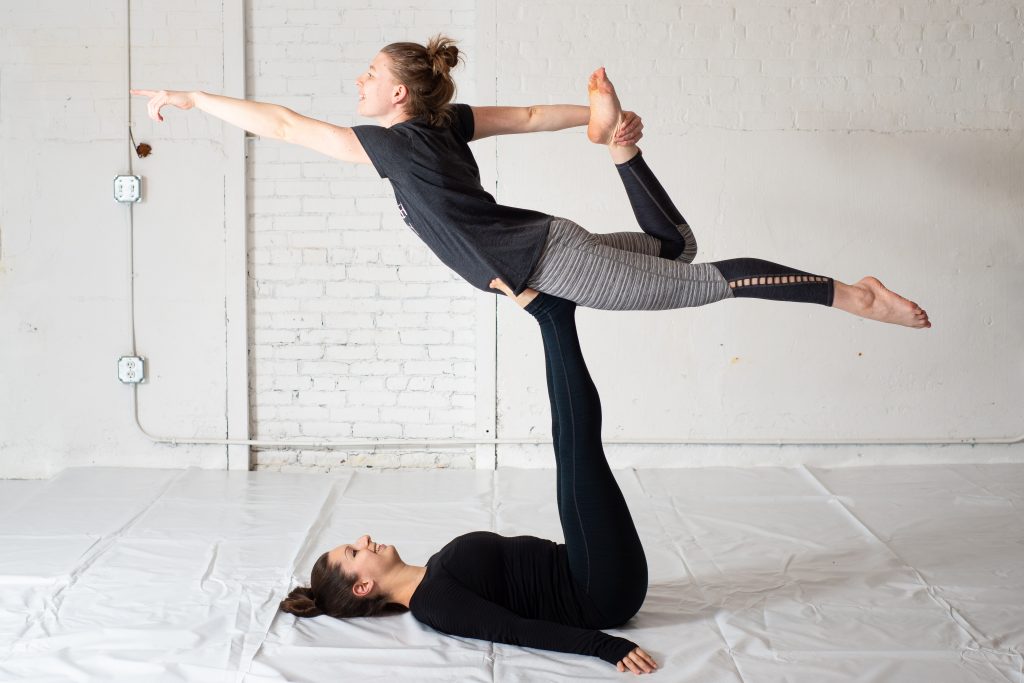 Acro Yoga or L-based Flow focuses on smooth, controlled movement while improving balance, flexibility and strength.