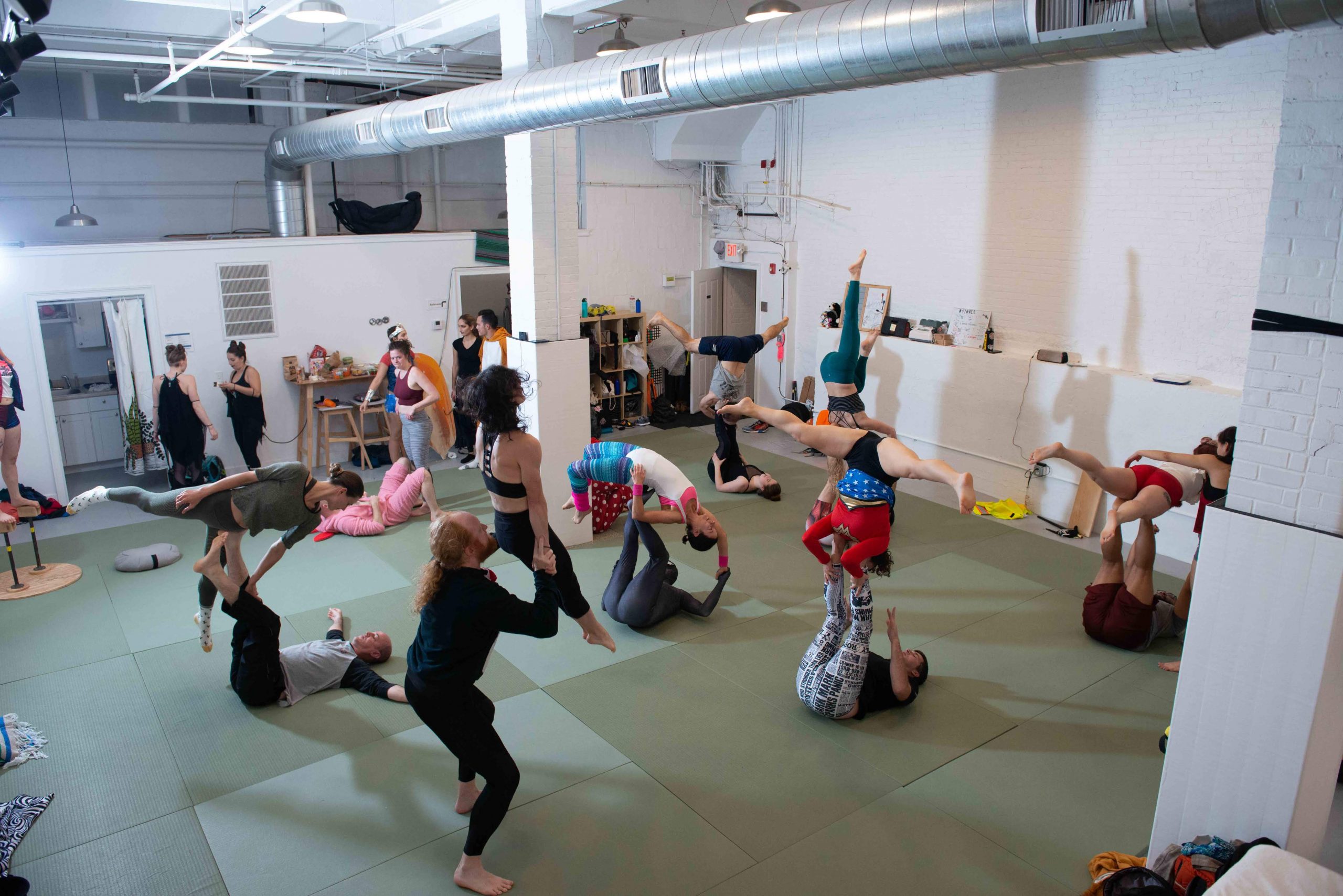 Our space is open to anyone and everyone who is interested in movement, self improvement, community or any combination of the three. You do not need any prior experience in acro, flexibility, or strength to begin your movement journey with us.